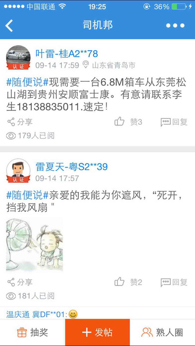 4.司机邦-货车司机网上家园 每次货运都是一次旅途。有事儿没事儿,大家都来说说,货车司机网上心灵家园。每天(上午10点。下午16点整)货车司机还可以免费抢大礼哦!