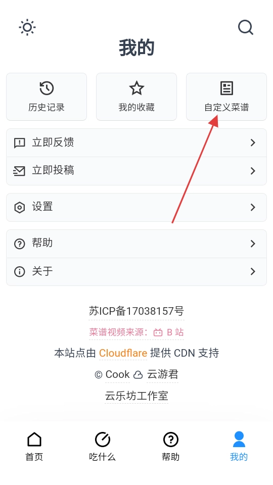 2. 当进入“我的”页面后,点击“自定义菜谱”功能。