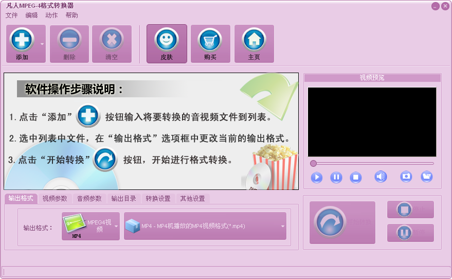 《凡人MPEG-4格式转换器》是专业的MPEG-4格式转换器软件,可以把任何格式的电影视频转换为MPEG-4电影格式,如RMVB转MPEG-4,MKV转MPEG-4,AVI转MPEG-4,FLV转MPEG-4,MOV转MPEG-4、MPG格式转换MPEG-4等等。软件支持高清MPEG-4视频转换,可以转换720p,1080p,1280p及以上全高清视频。MPEG-4视频转换器是您iPhone、iPad、智能手机、平板电脑、及各种安卓设备的最佳配套软件。软件界面美观,转换速度快,易操作,支持批量转换任务,支持自动关机功能,帮您节省大量的时间。【软件特色】