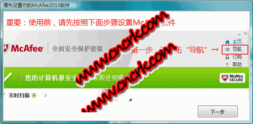 迈克菲2010排除设置程序 V1.0 简体中文绿色免费版 主要功能: