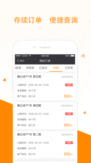 3. 针对理财师人群提供集在线签约、存续管理、新增认证、认购产品等一系列移动互联技术,帮助理财师移动执业和智能办公,提高工作效率。