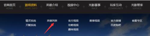 首先,打开电脑上的浏览器,进入光影对决官网,点击英雄资料,进入英雄列表。