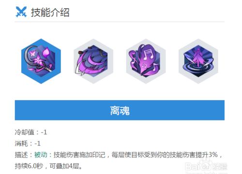 再来看一下她的技能,嗯,可以使对方受到的伤害不断增加,当然这是有上限的哦,从中我们可以得知他是一个伤害慢慢累积的慢热型英雄。