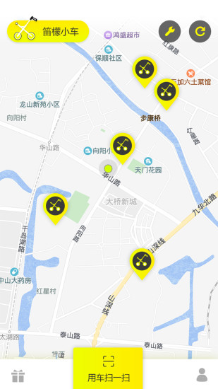 用户注册手机账号,进行实名认证、交纳押金或充值后,即可扫码用车,用车行程结束后分享给qq、微信好友,邀请好友加入笛檬小车,还可获取信用分或奖励金;
