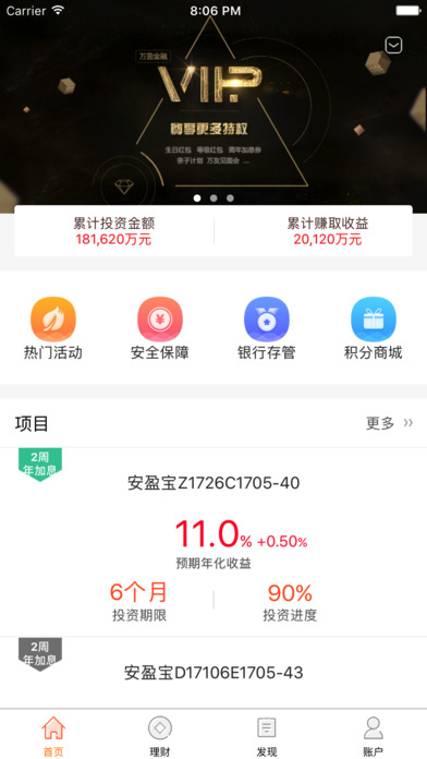 -用户通过万盈金融可以实时便捷地进行充值,投资,提现等理财操作管理。