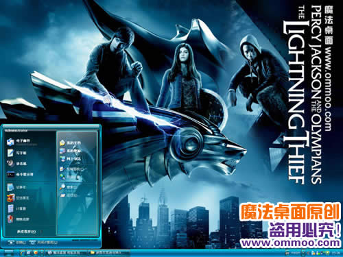 魔法桌面原创xp、vista、windows7通用版波西杰克逊与神火之盗桌面主题,电影海报的蓝色调被沿用到主题制作中,漂亮而又显得神秘,充满科幻色彩。