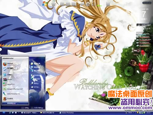 魔法桌面原创我的女神电脑桌面主题,选用贝璐丹蒂作为此款主题的主要人物。Belldandy是首先登的女神,她非常漂亮,拥有一头淡金黄色的头发,而且还十分善良、温柔、真诚。整款主题制作精美,还附有登陆界面哦~