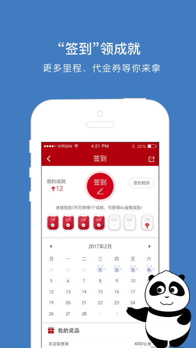 新增“签到”领成就,更多里程、代金券等你来拿。