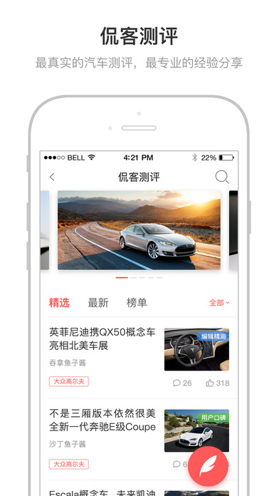 1. 汽车资讯 - 每时每刻,随时随地,轻松掌握全球的汽车资讯报道。2. 侃客测评 - 与资深汽车专家,车迷,或者是对汽车感兴趣的人,分享和探讨关于汽车的一切。
