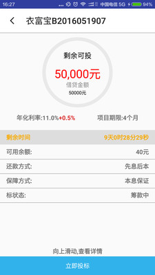 趣投资app是一家专业从事互联网金融服务的平台,由深圳前海启元互联网金融服务有限公司运营。总部位于深圳,注册资本5000万元。“趣投资”专注产业链金融,当前重点推出以下五个产品:光伏宝、衣富宝、稳赢宝、车贷宝、嘉财宝。致力于打造以用户服务为核心,以用户体验为导向,安全、高效、透明的一体化金融服务平台。