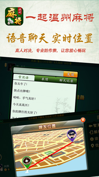 一起温州麻将游戏纯正的温州本地规则麻将游戏,可以自选择台炮和龙港玩法,在优美的音乐中与好友对战。一起温州麻将生动活波的任务形象,俏皮的对话,生动有趣的表情,全程语音肯定让你忍俊不禁。