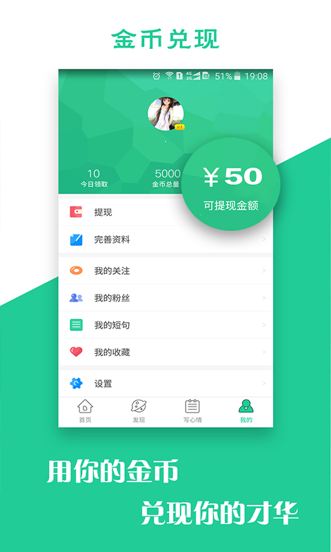 【金币兑现】发布短句赚取金币,用你的金币兑现你的才华!