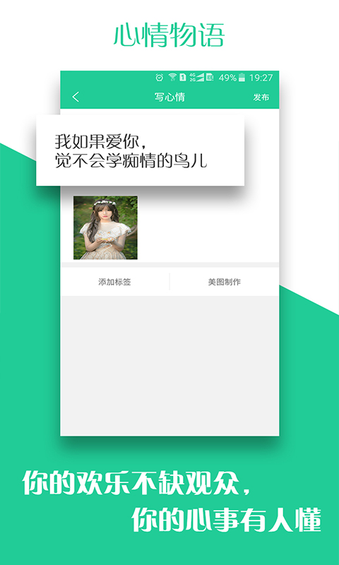 【推荐】私人订制你的专属心情语录,快乐你的快乐,忧伤你的忧伤;【写心情】记录分享你当下的心情,你的欢乐不缺观众,你的无邪有人懂;