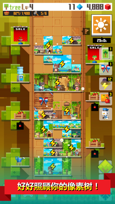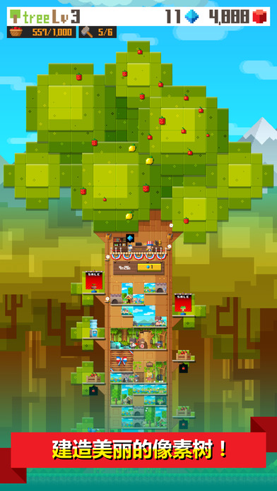 像素树是一款由Faraway Kingdom制作的模拟养成游戏。游戏讲述了如何成为一个合格的市长替补的故事。玩家作为猴子市长莫里斯请来的救兵,帮助猴子市长在像素树市建造一个动物天堂,招徕住户。玩家可通过点击树冠和树枝来获取像素点果实用于建设小镇,比如建造各种动物们所需要的居所。还可以在乌云密布时求雨提高农作物产量,并且不断扩展和催生大树的生长来壮大像素树市。【游戏背景】