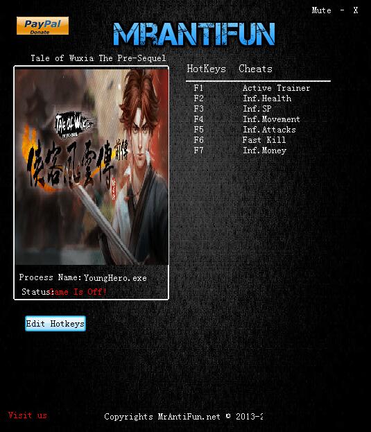 侠客风云传前传六项修改器 免费版 侠客风云传前传修改器是专为《侠客风云传前传》游戏玩家们所准备的修改工具。该工具可为玩家免费提供无限生命、无限SP、无限运动、攻击、金钱、快速击杀等六项修改功能,有爱自取。