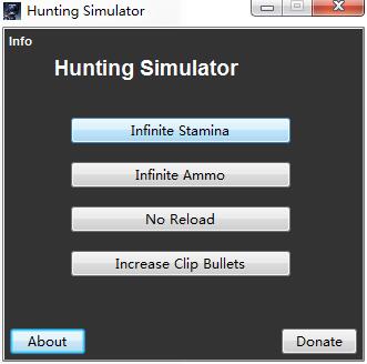 狩猎模拟修改器是专为《狩猎模拟》游戏玩家们所准备的修改工具。该工具使用后可以为玩家免费提供无限耐力、无限弹药、无需加载、增加弹夹等四项修改功能,带给玩家更流畅的游戏体验。