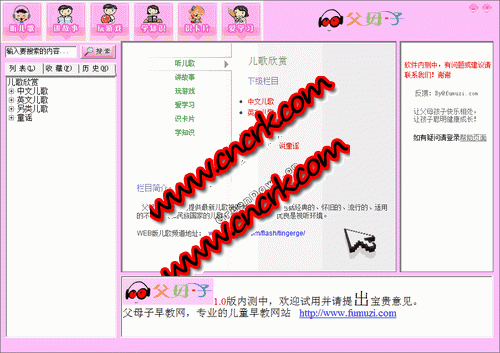 父母子儿歌播放器 V1.216 简体中文官方安装版 父母子系列软件,是伴孩子成长的好伙伴。软件包括故事,成语故事,童话故事,中文儿歌,童谣,英文儿歌,唐诗宋词,学拼音,百科常识,安全教育,益智游戏,涂色拼图,数学游戏,语文游戏,英语教材等。本软件按照儿童的身心特点安排了许多的儿歌、故事、游戏和训练,使孩子按照大脑发展的规律得到适宜的锻炼,在最适当的时期学到应会的本领,从而开发孩子的潜能。