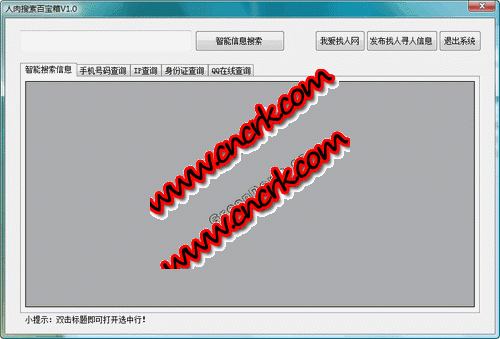 人肉搜索百宝箱 V1.0 简体中文绿色免费版 人肉搜索百宝箱是一款帮助你找人寻人的小工具,让你可同时查询Mop、天涯、百度、google等人肉搜索网站,对于找人寻人的你,可以很方便的获得相关的资讯。同时附有方便的小工具:查询手机号码,查询身份证号,查询QQ隐身在线状态,查询IP地址归属地等,使用方便,是你网络寻人找人的好工具。