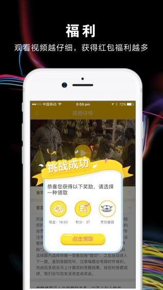 1、观看视屏,答题获得奖励2、支持手机号、邮箱、微信登录