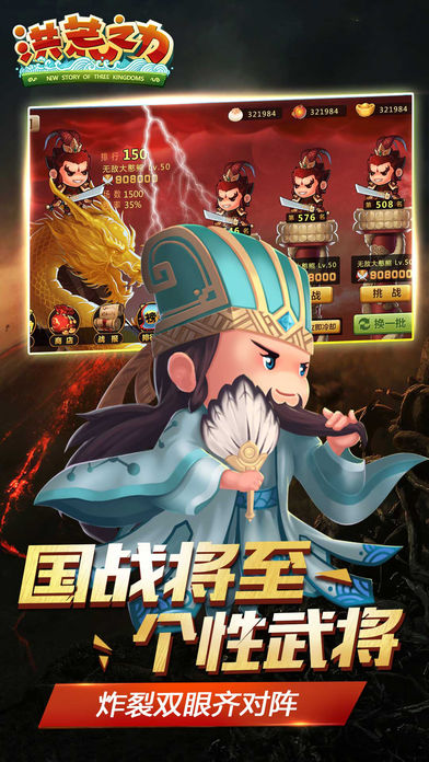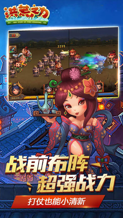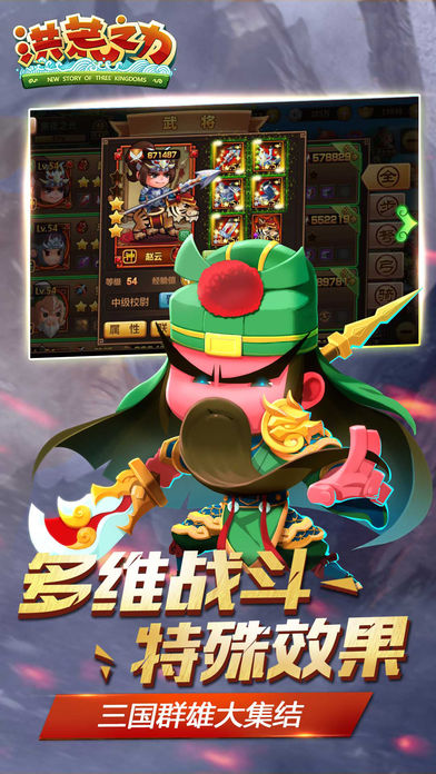 洪荒之力是成都戴城科技、上海弹指网络联合推出的新一代国战手游。《洪荒之力》以国战为主打,战斗采用原创的分屏对阵模式。玩家将率领上百位三国历史名将、多达数十种的兵种,组建自己的超豪华军团,征战四方一统乱世。《洪荒之力》拥有独一无二的战斗玩法和丰富多样的系统功能。游戏特有的武将组合技,不同武将组合将爆发超强战力;创新的战前布阵,名将统帅搭配兵种阵型演绎多维战斗。玩家在最新国战玩法中还可以体验到野战、攻城、守城等创新玩法。之外,游戏还拥有兵种之间的五行相生相克、分屏展示超震撼的战争场面以及趣味多样的休闲养成功能等特色和玩法。【游戏特色】