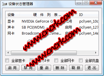 其实很多人需要用到这个小工具,系统自带的设备管理器这方面又很弱,对于菜鸟来说更是无从下手,为此写了这么个东西以解燃眉之急(可能部分杀毒误报,请用户注意判断...)