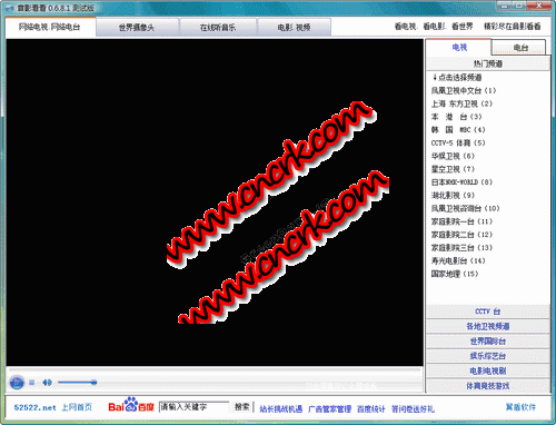 音影看看是一款绿色软件,您不需要支付任何费用。 功能简介:看电视、看电影、看世界.具有网络电视台,网络电台,世界各地实时摄像头观看,在线听歌,影视、电视资源。(软件正在进一步制作中,将陆续更新更多频道。)