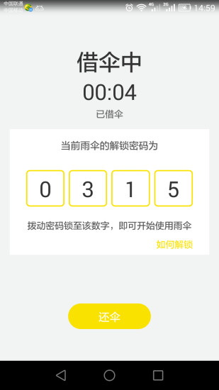 使用北京共享雨伞APP怎么借伞?下载并安装该APP后,一键注册并实名认证,用户在支付29元押金和充值9元后就可以开始使用借伞功能了。一键点击【立即借伞】,快速获取解锁密码,手动拨动密码锁,轻松使用雨伞。待雨伞使用完毕后,直接在客户端结束用伞就可以了。