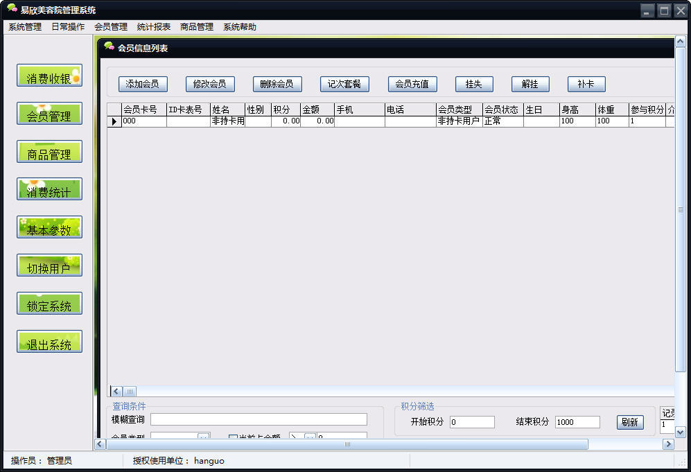 1.产品包括服务类和商品类,服务项目均可选择美容师、床位,支持各种结账方式。2.完善的会员管理,支持挂失、解挂、补卡,支持各种积分,可以管理意向会员。