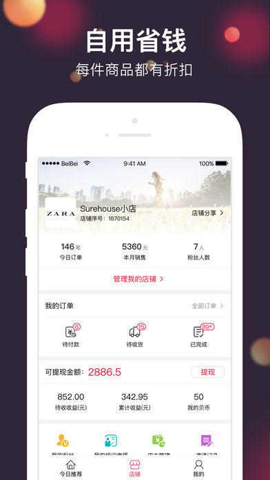贝店,我的店!购物省钱,分享赚钱!一键开店,零库存,一站式服务,让你轻松开店创业!【功能介绍】