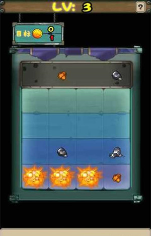 3.点击界面里的炸药,可以根据炸药等级炸毁一行里的数个矿石、以腾出足够空间来合并其他的矿石;炸药等级可以通过图标上的雷管数量来判断;