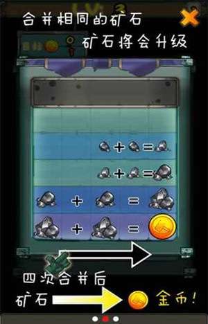 4.当矿石被合并四次之后就会变成金币;收集足够的金币,就可以通过当前关卡!