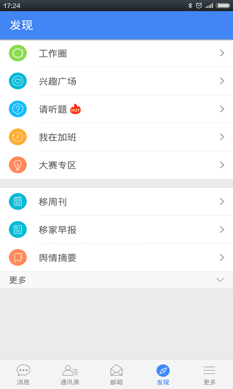 集团通讯录:57万移动人在一起,想到就能找到;企业邮箱:随时随地,收发邮件,这才是移动互联网;
