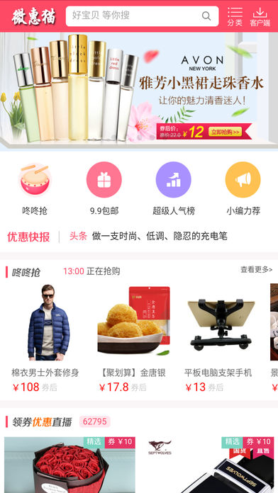 微惠猫,一款超省钱的购物软件,搜罗了大量淘宝天猫商品优惠券,随时随地在线免费领取,让用户花更少的钱就能把自己心仪的商品带回家,购物更划算。【功能介绍】