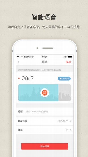 可以自定义语言备忘录,每天早餐给你不一样的提醒