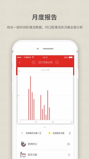 1、智能评分综合刷牙角度,时间以及压力对刷牙清洁度做参考评分