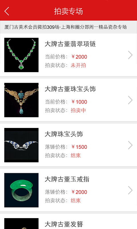 [古美术]是厦门古美术文化传播有限公司专为 iPhone/Android 手机用户推出的收藏品在线拍卖交易平台。古美术公司坐落在美丽的鹭岛厦门,长期为藏友提供大量精美优质的收藏品。目前工作团队成熟稳定,藏友竞拍活跃热情,每场拍卖活动都进行的热火朝天,广受藏友们好评。[古美术]将每天开设拍卖专场,欢迎各位收藏爱好者参与。