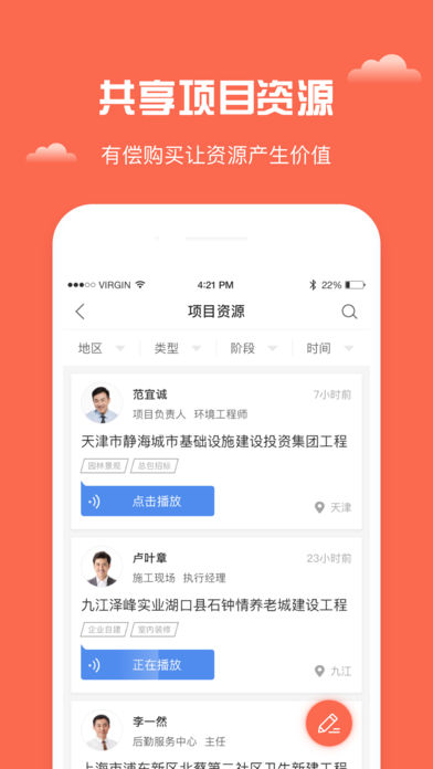合力工程是一款建筑行业信息共享APP,找资源、看工程、扩展人脉,就用合力工程。【功能介绍】