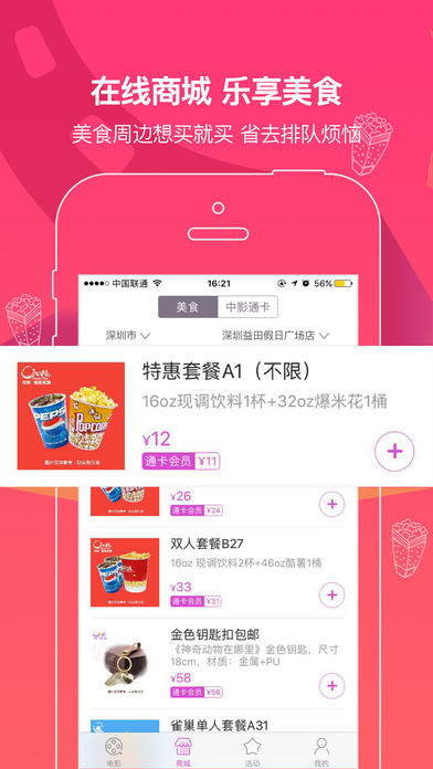 在线购买美食套餐,省去排队烦恼,还有电影周边等着你!