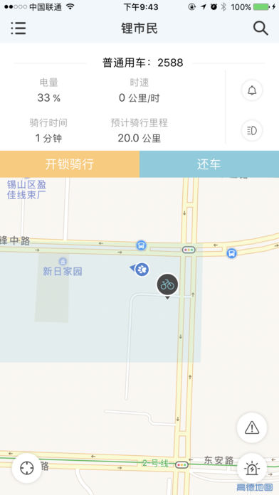 4、骑行结束点XX,智能锁车无需手动关锁。