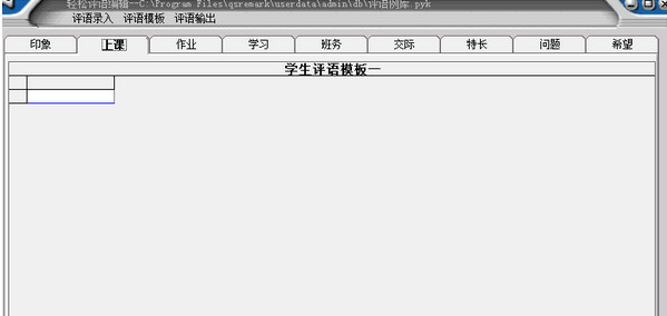 1、自动化的学生评语编辑2、提供了大量适合不同年级学生的评语模板例句及精彩评语范例