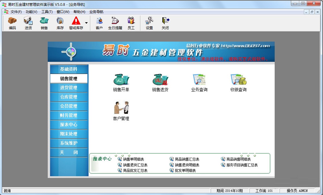 易时五金建材销售管理系统是一款专为五金建材销售行业所提供的管理软件。该软件拥有销售管理、进货管理、仓库管理、会员管理、财务管理、报表中心等等功能,带给管理者专业的管理系统。