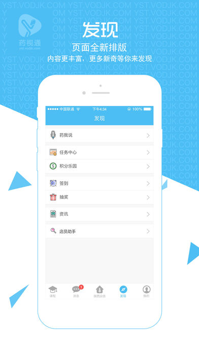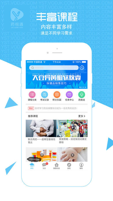 药视通App是一款针对连锁药店打造的专业医药培训学习软件,提供海量、优质的医药知识及药品销售技巧培训课程,让你在手机上就能完成各种课程,用户可以根据自身的学习情况,自主安排学习进度。在实现专业化的同时也提升其销售业绩。通过企业课程培训,设置学习任务,提升员工专业知识和职业技能。同时利用碎片化时间及时获得行业资讯。
