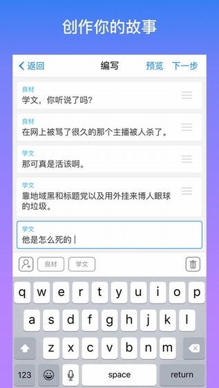 正如“迷说”的产品标语所写,“对话小说,边点边读”。这款App通过点触屏幕获取下条信息的交互方式,让短信息逐条呈现,充满悬念,从而十足勾起了读者兴趣。