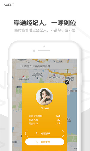 真实房源,一手掌握:条件查找+精准推送,房源高效匹配靠谱经纪人,一呼到位:随时查看附近经纪人,不是好手我不要