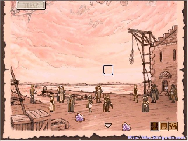 《废都物语》采用的是探索方式跟像是上帝视角,直接在地下城地图上进行移动(瞬移啦)和操作,地图上每一个亮点都会触发相应的事件或谜题或遭遇敌人,解决事件的方式不只有战斗(当然有时也不得不战斗啊),遇到过不去的地方多思考,挖一铲子或者点个灯说不定就豁然开朗。这种系统非常节约游戏体积,简化了传统RPG跑图或者地雷式遇敌浪费的事件,而且游戏内容不减反增,大量的谜题和事件极大的丰富了游戏内容。