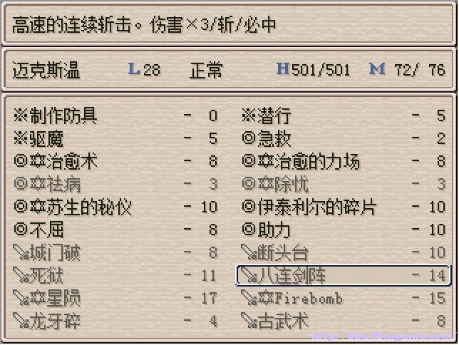 转职系统太关键了,由于可以多次转职并且保留之前各个职业技能和属性,转职是除了升级外提升角色的关键。很可能由于途中转职顺序选择得不好而遭遇探索瓶颈。本人最后转职了5、6次,主角基本学会了所有职业三分之一的技能,可惜SP不够了,不然还能成长。