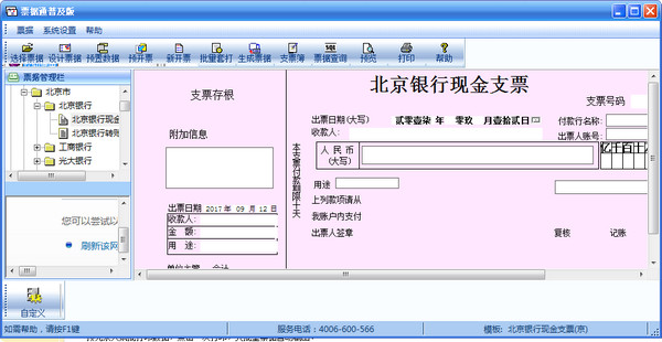 软件内置全国32个省市2000余种各大银行财务票据(如支票、进账单、汇票)、快递单、邮政单据、信封等自定义模板供您选择打印。