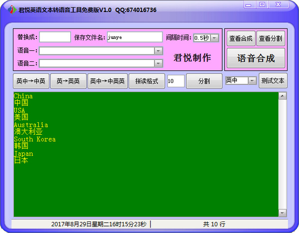 君悦英语文本转语音工具是一款免费的中英文本转换工具,可以把中英文文本转换为MP3音频以及自动生成LRC字幕的软件,操作简单,功能实用,纯绿色软件,无任何广告,特别适合外语学习的朋友们。【软件特色】
