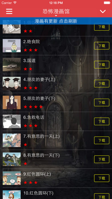 恐怖漫画馆app总有你想不到的惊奇,整篇漫画一次更新完,再也没有等更的烦恼!