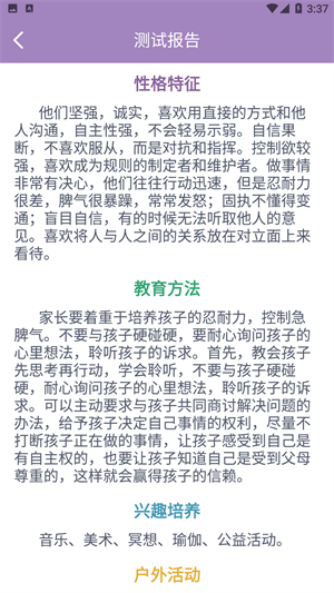 1. 九型人格之儿童版:专为儿童设计,测试由家长来完成,旨在帮助家长了解儿童性格特点,从而做到因材施教。
